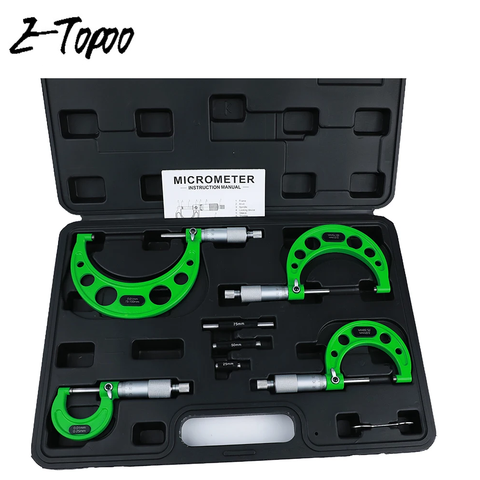 4個セット高精度0.01mmマイクロメーターグリーン/ブループラスチックボックス研削外側マイクロメーター測定ツール